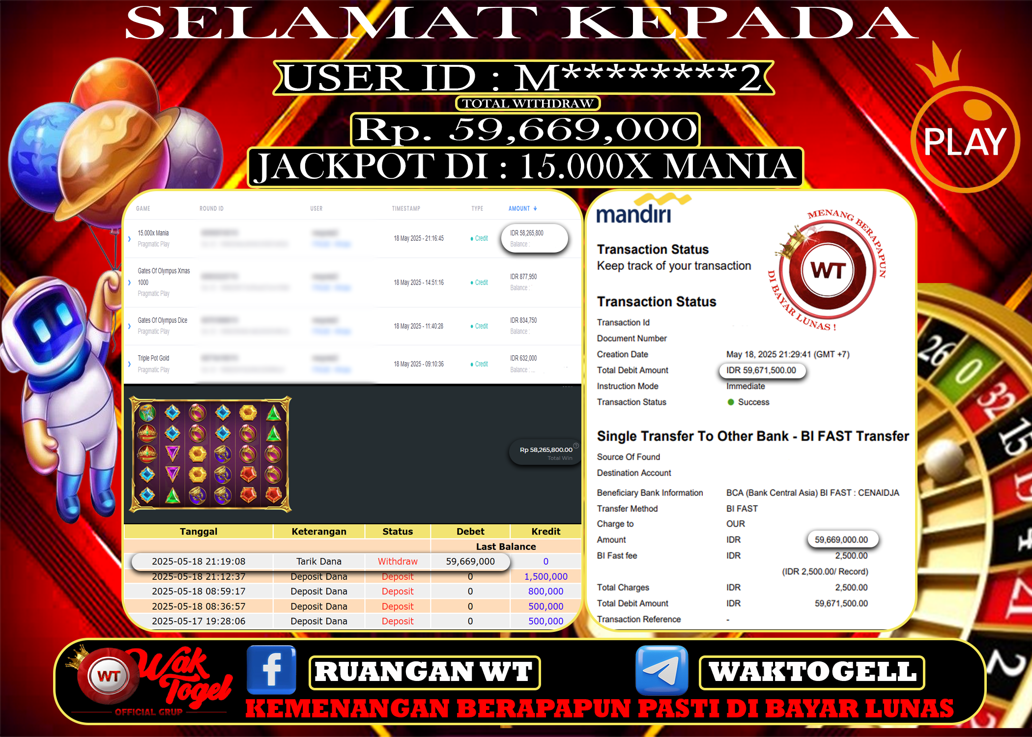 JACKPOT SLOT WAKTOGEL BUKTI PEMBAYARAN SLOT WAKTOGEL By JPWT Mei 18, 2025 0 comments 2 min read BUKTI PEMBAYARAN SLOT WAKTOGEL BUKTI PEMBAYARAN SLOT WAKTOGEL RP. 59,669,000 – GAME : SLOT 15.000X MANIA (USER ID : M********2) TANGGAL |18-05-2025| CASH LUNAS ! […]