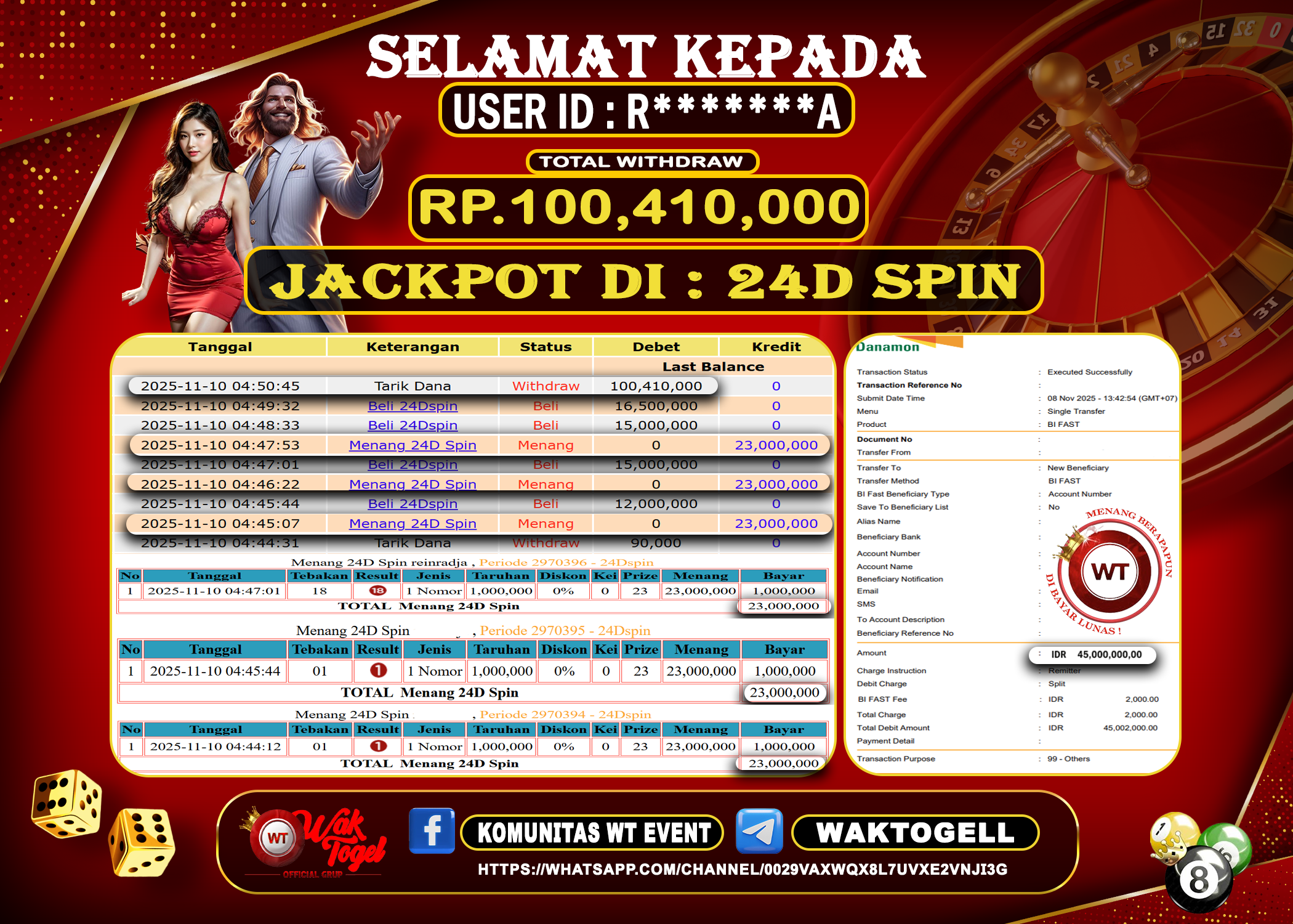 JACKPOT CASINO WAKTOGEL BUKTI PEMBAYARAN 24D SPIN WAKTOGEL By JPWT November 10, 2025 0 comments 2 min read BUKTI PEMBAYARAN MENANG 24D SPIN WAKTOGEL BUKTI PEMBAYARAN 24D GAMES WAKTOGEL RP.100.410.000 – GAME : CASINO 24D SPIN (USER ID : R*******A) TANGGAL |10-11-2025| CASH […]