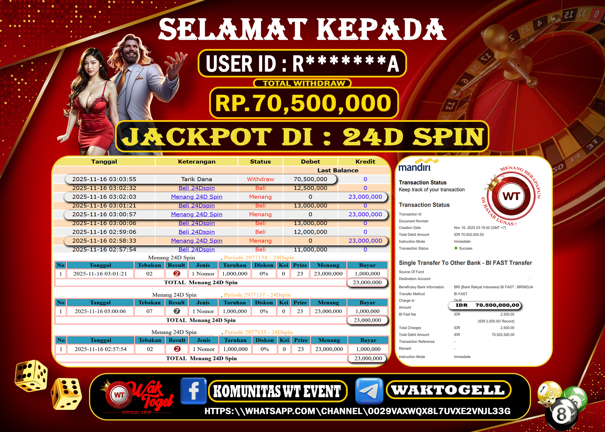 JACKPOT CASINO WAKTOGEL BUKTI PEMBAYARAN 24D SPIN WAKTOGEL By JPWT November 16, 2025 0 comments 2 min read BUKTI PEMBAYARAN MENANG 24D SPIN WAKTOGEL BUKTI PEMBAYARAN 24D GAMES WAKTOGEL RP.70.500.000 – GAME : CASINO 24D SPIN (USER ID : R*******A) TANGGAL |16-11-2025| CASH […]
