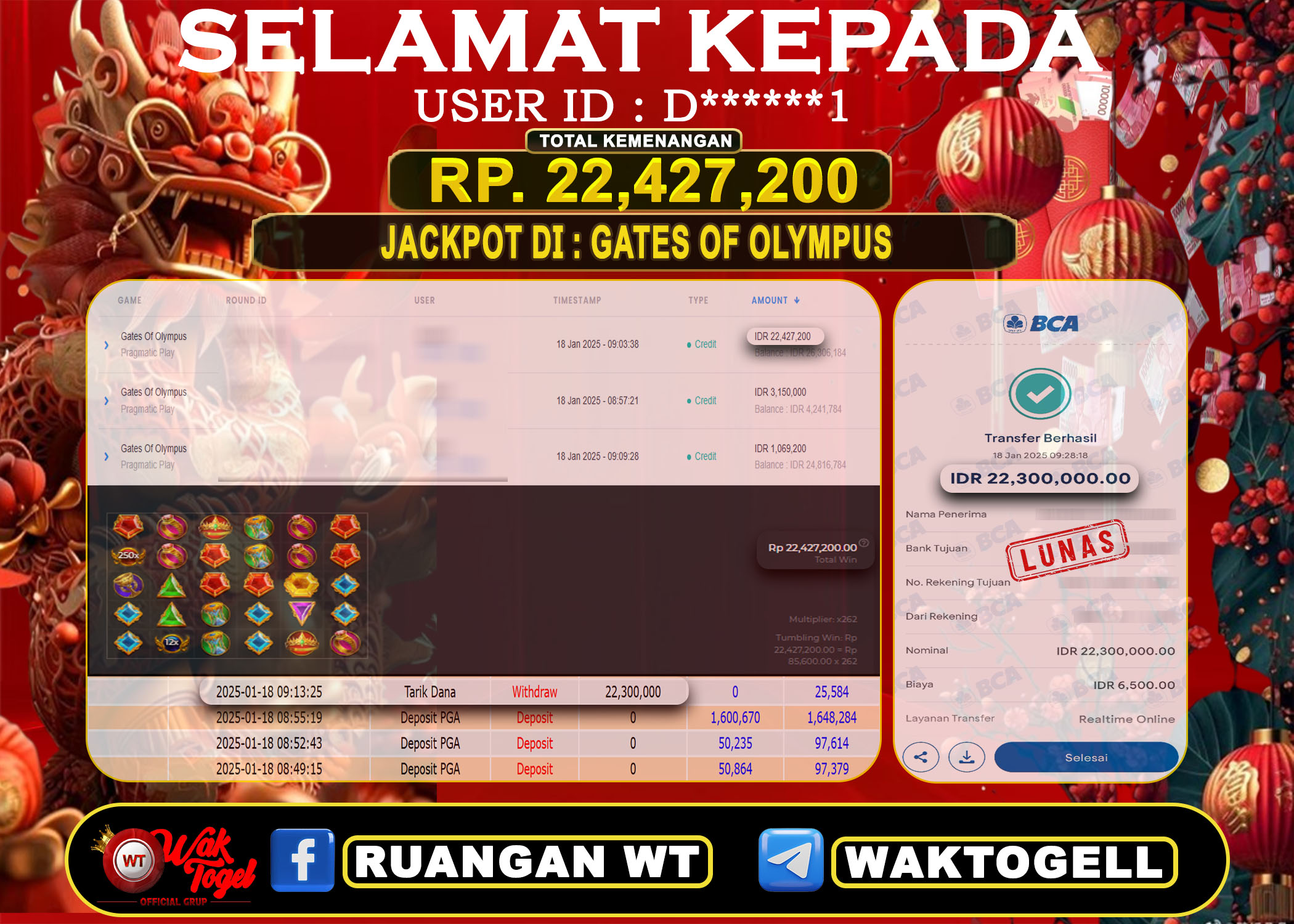 JACKPOT SLOT WAKTOGEL BUKTI PEMBAYARAN SLOT WAKTOGEL By JPWT Januari 18, 2025 0 comments 2 min read BUKTI PEMBAYARAN SLOT WAKTOGEL BUKTI PEMBAYARAN SLOT WAKTOGEL RP. 22,427,200 – GAME : SLOT GATES OF OLYMPUS (USER ID : D******1) TANGGAL |18-01-2025| CASH LUNAS […]