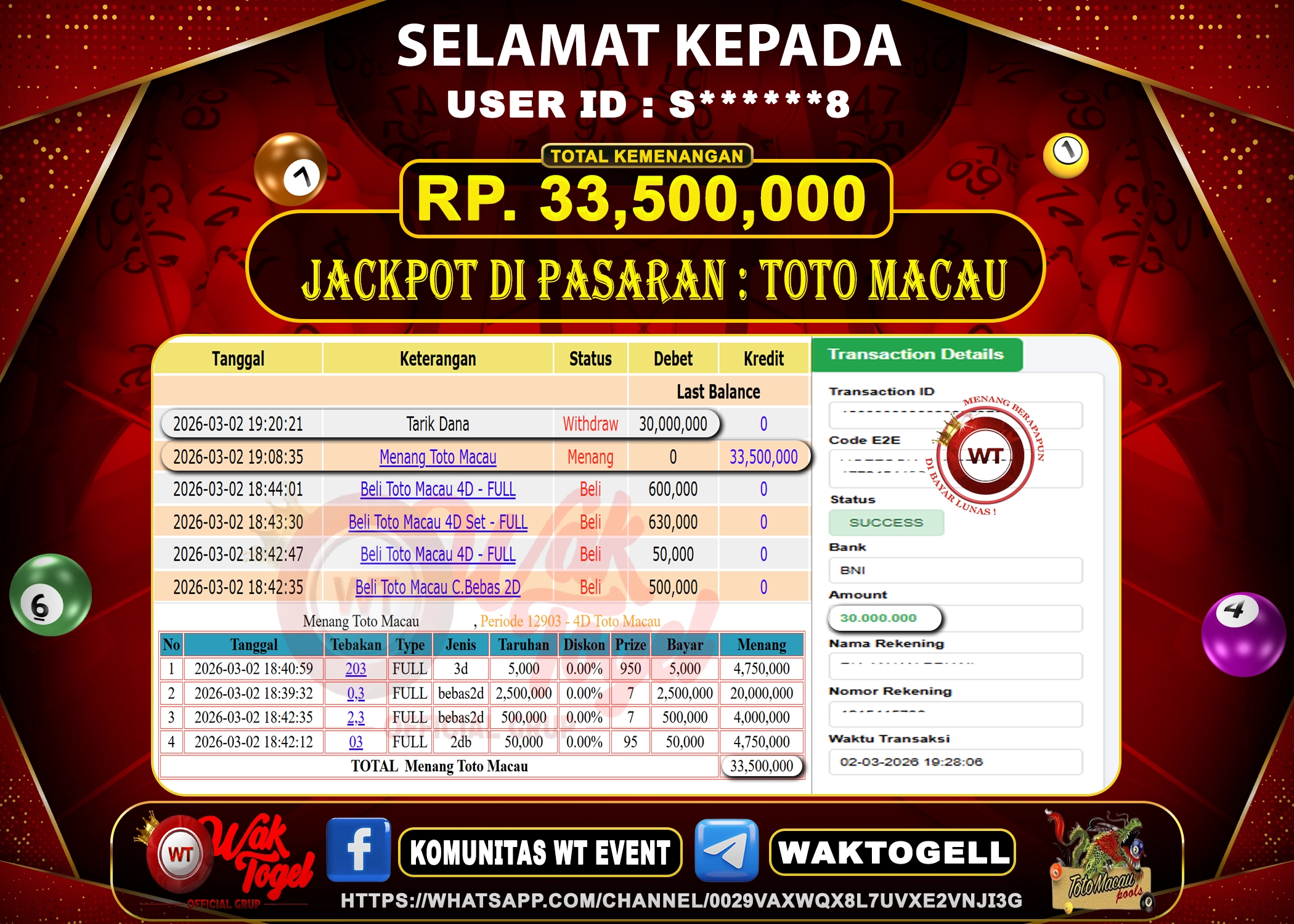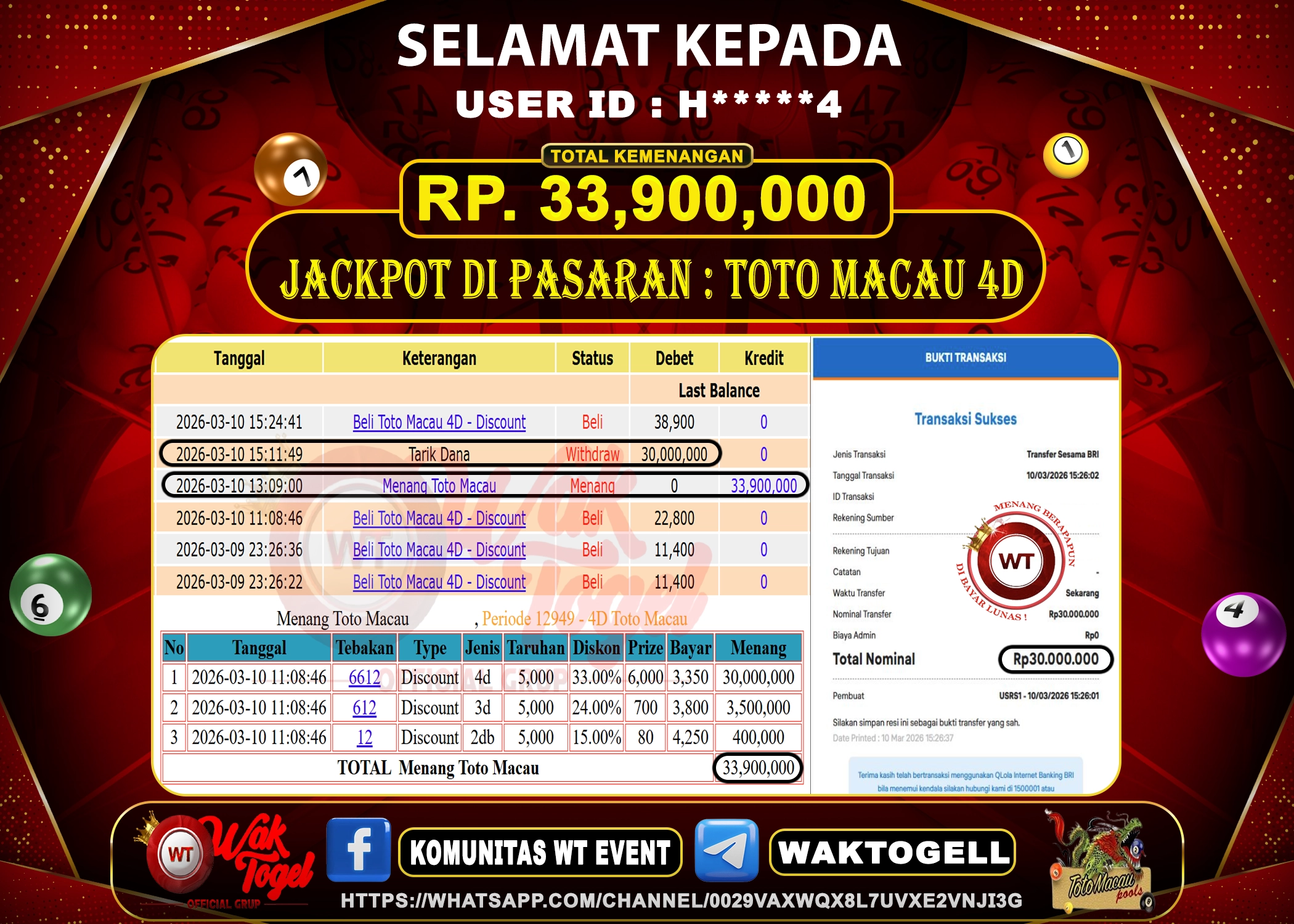 JACKPOT TOGEL WAKTOGEL BUKTI PEMBAYARAN TOTO MACAU 4D WAKTOGEL By JPWT Maret 19, 2026 0 comments 2 min read BUKTI PEMBAYARAN TOTO MACAU 4D WAKTOGEL BUKTI PEMBAYARAN TOTO MACAU 4D WAKTOGEL RP. 90,000,000 – GAME : TOGEL TOTO MACAU 4D (USER ID : B*****N) […]