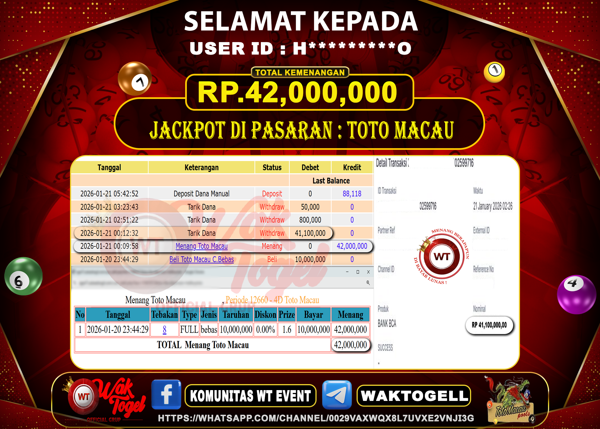 BUKTI PEMBAYARAN TOTO MACAU WAKTOGEL BUKTI PEMBAYARAN TOTO MACAU WAKTOGEL RP. 42,000,000 – GAME : TOGEL TOTO MACAU POOLS (USER ID : H*********o) TANGGAL |21-01-2026| […]