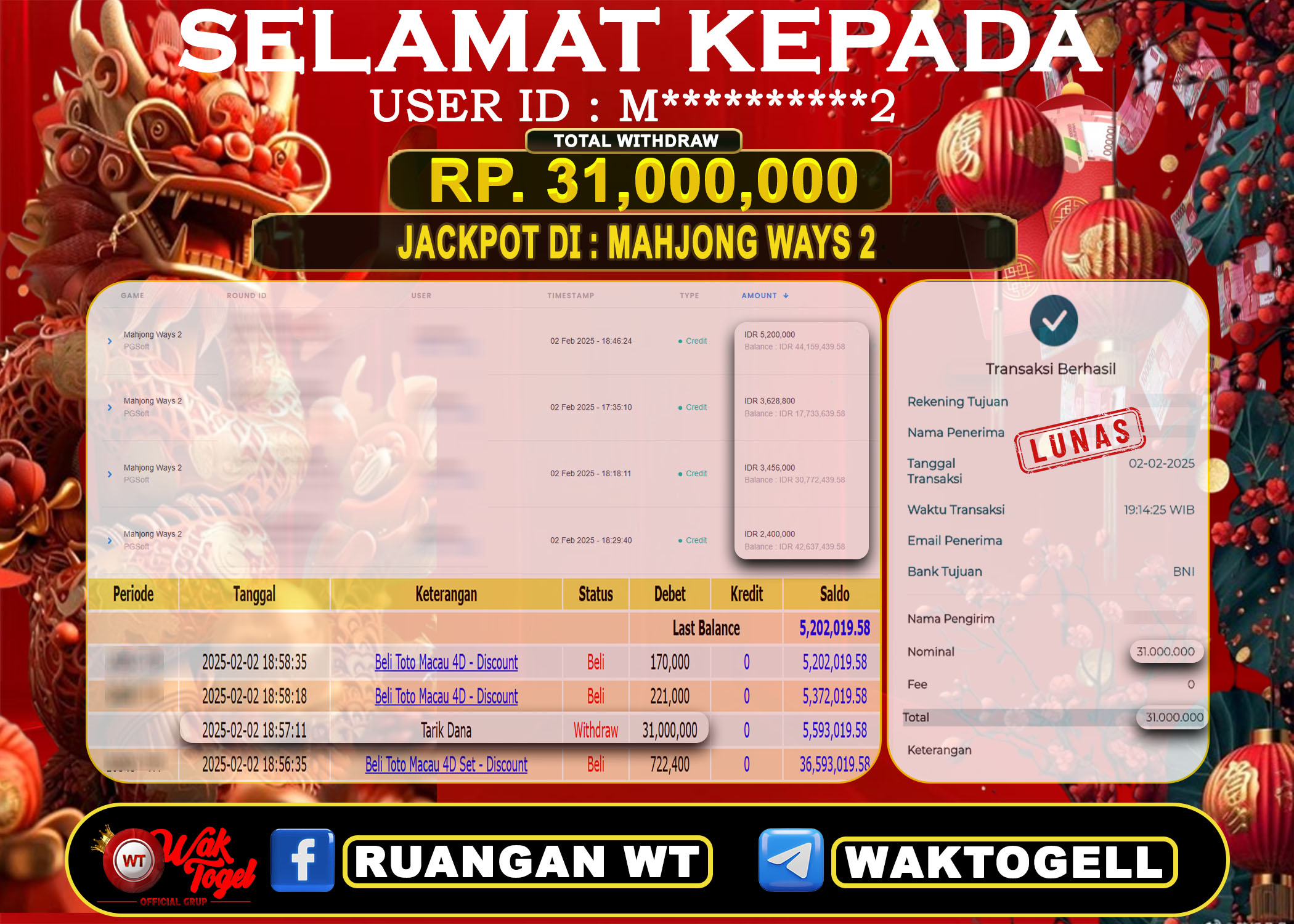Bukti Pembayaran Jackpot Waktogel Untuk SLOT, TOGEL , LIVECASINO