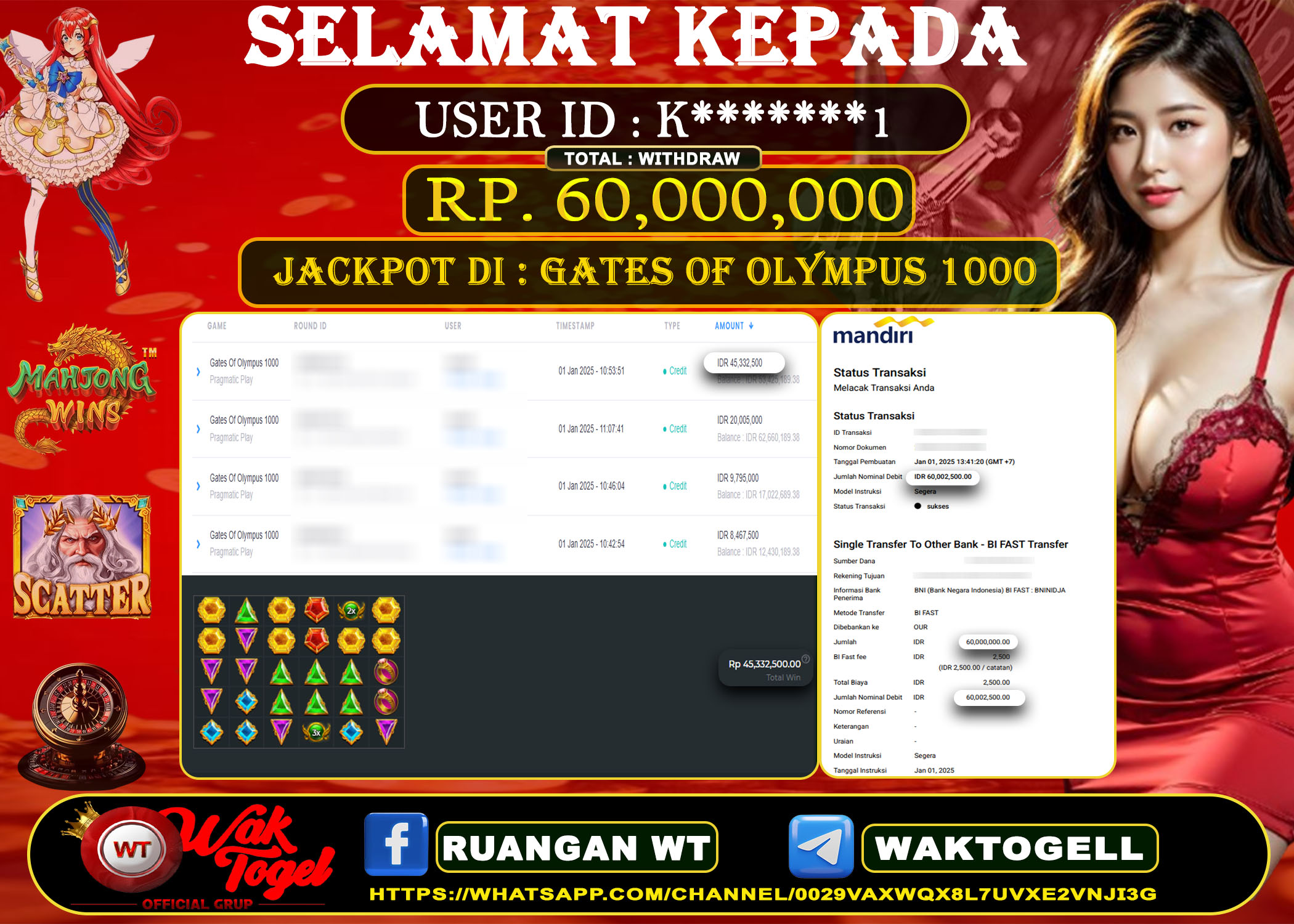 JACKPOT SLOT WAKTOGEL BUKTI PEMBAYARAN SLOT WAKTOGEL By JPWT Januari 1, 2025 0 comments 2 min read BUKTI PEMBAYARAN SLOT WAKTOGEL BUKTI PEMBAYARAN SLOT WAKTOGEL RP. 60.000.000 – GAME : SLOT GATES OF OLYMPUS 1000 (USER ID : K*******1) TANGGAL |01-01-2025| CASH […]