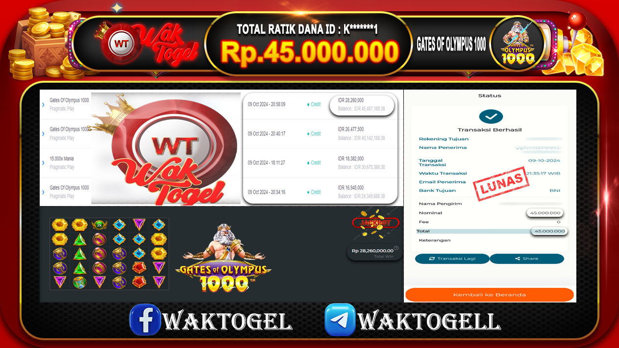 JACKPOT SLOT WAKTOGEL BUKTI PEMBAYARAN SLOT WAKTOGEL By JPWT Oktober 10, 2024 0 comments 2 min read BUKTI PEMBAYARAN SLOT WAKTOGEL BUKTI PEMBAYARAN SLOT WAKTOGEL RP. 45.000.000 – GAME : SLOT GATES OF OLYMPUS 1000 (USER ID : K*******1) TANGGAL |09-10-2024| CASH […]