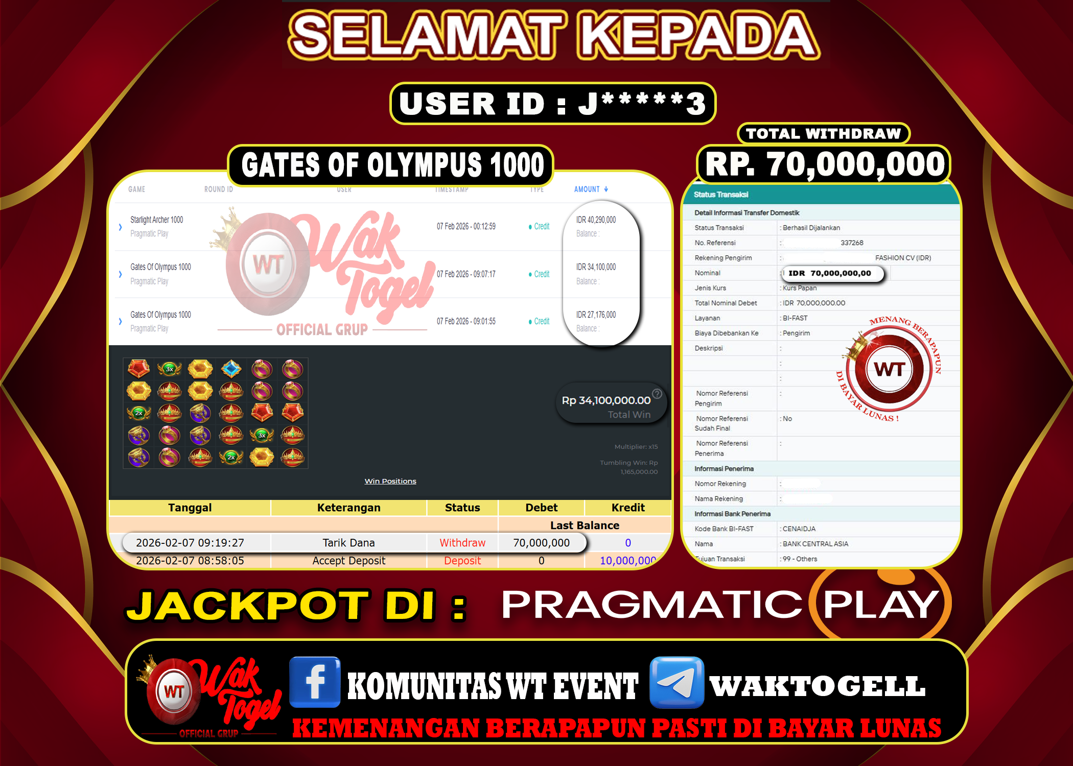 JACKPOT SLOT WAKTOGEL BUKTI PEMBAYARAN SLOT WAKTOGEL By JPWT Februari 7, 2026 0 comments 2 min read BUKTI PEMBAYARAN SLOT WAKTOGEL BUKTI PEMBAYARAN SLOT WAKTOGEL RP. 70,000,000 – GAME : SLOT GATES OF OLYMPUS 1000 (USER ID : J*****3) TANGGAL |07-02-2026| CASH […]