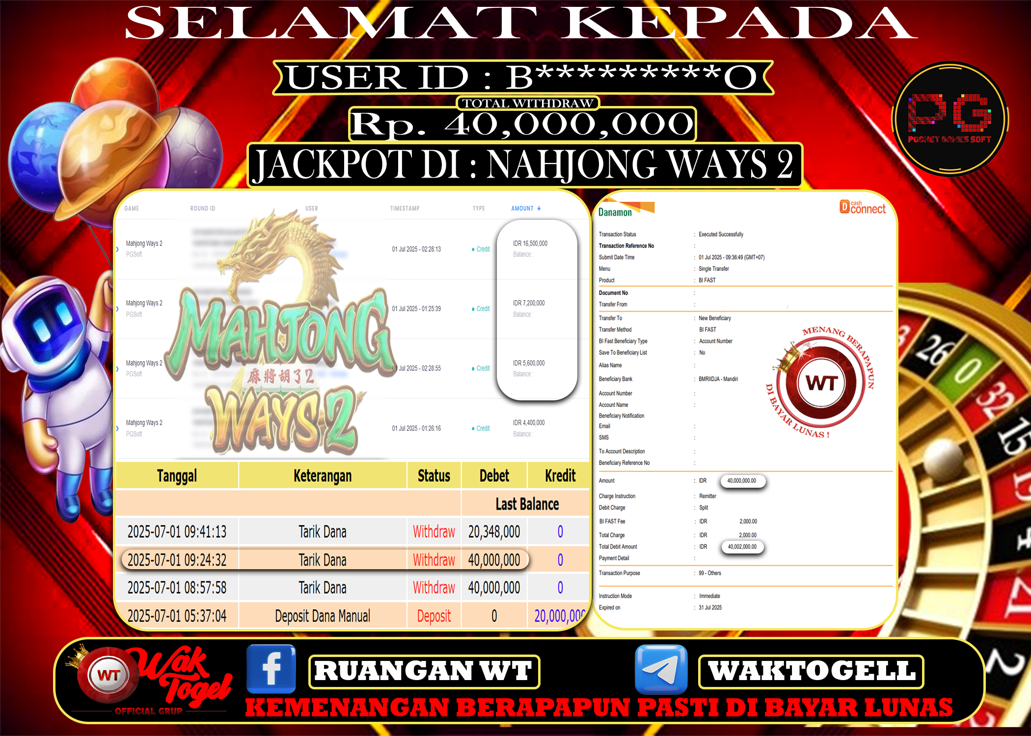 JACKPOT SLOT WAKTOGEL BUKTI PEMBAYARAN SLOT WAKTOGEL By JPWT Juli 1, 2025 0 comments 2 min read BUKTI PEMBAYARAN SLOT WAKTOGEL BUKTI PEMBAYARAN SLOT WAKTOGEL RP. 40.000.000 – GAME : SLOT MAHJONG WAYS 2 (USER ID : B*********O) TANGGAL |01-07-2025| CASH LUNAS […]