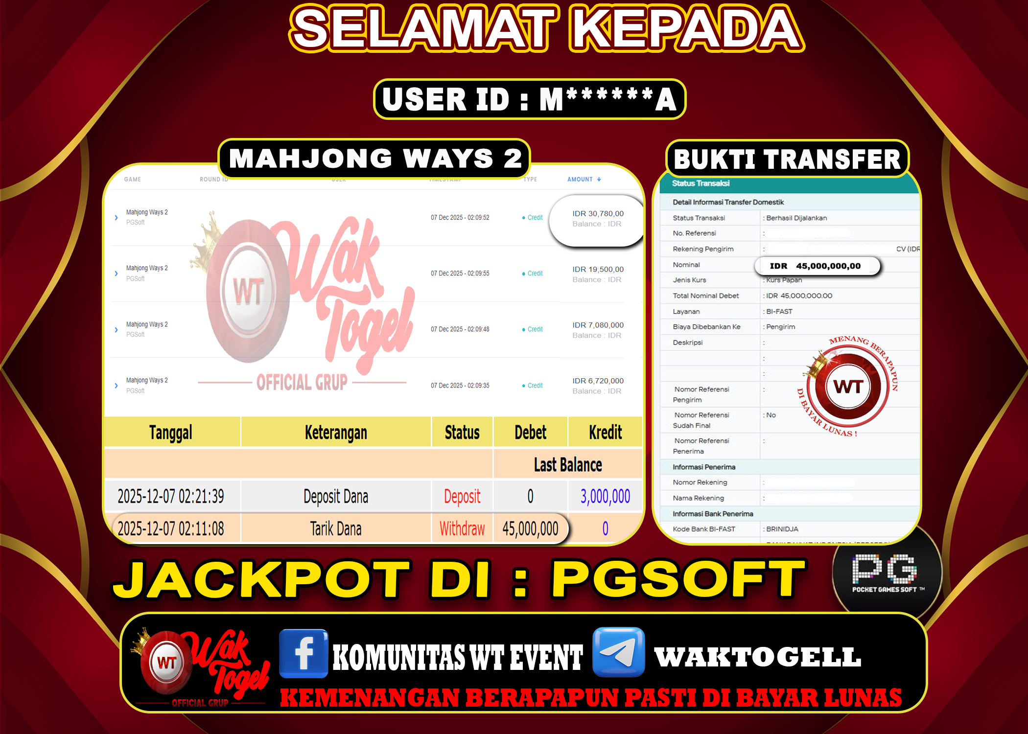 JACKPOT SLOT WAKTOGEL BUKTI PEMBAYARAN SLOT WAKTOGEL By JPWT Desember 7, 2025 0 comments 2 min read BUKTI PEMBAYARAN SLOT WAKTOGEL BUKTI PEMBAYARAN SLOT WAKTOGEL RP. 45,000,000 – GAME : SLOT MAHJONG WAYS 2 (USER ID : M******A TANGGAL |07-12-2025| CASH LUNAS […]