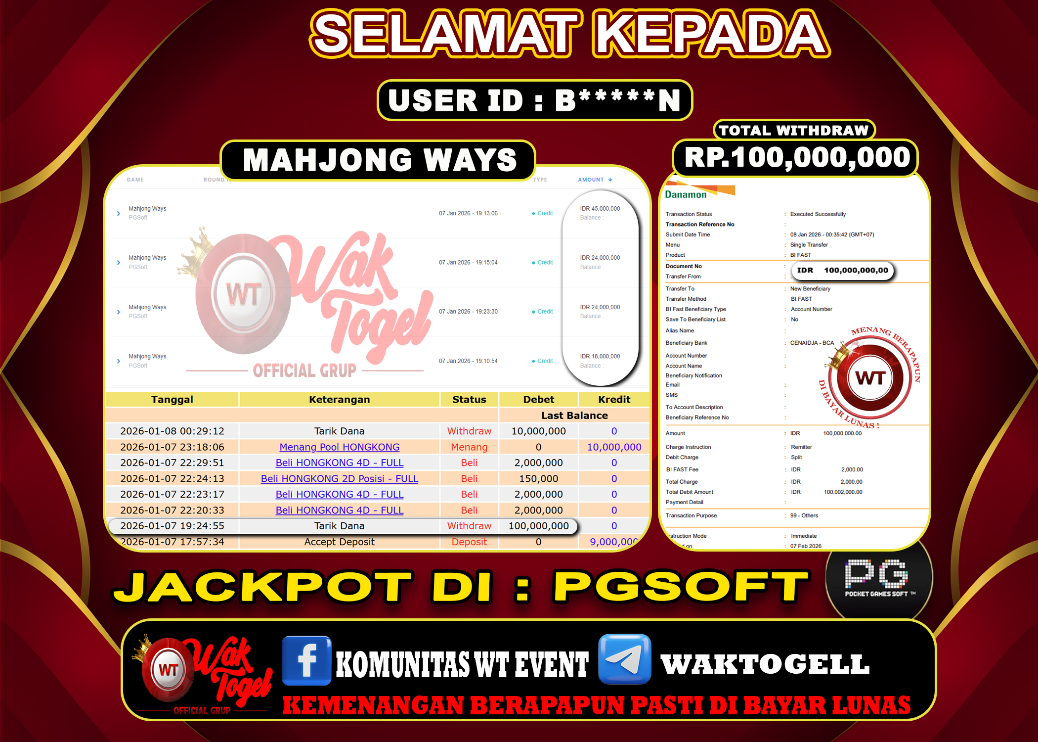 JACKPOT SLOT WAKTOGEL BUKTI PEMBAYARAN SLOT WAKTOGEL By JPWT Januari 10, 2026 0 comments 2 min read BUKTI PEMBAYARAN SLOT WAKTOGEL BUKTI PEMBAYARAN SLOT WAKTOGEL RP. 35,000,000 – GAME : SLOT MAHJONG WAYS (USER ID : G******A TANGGAL |10-01-2026| CASH LUNAS ! […]