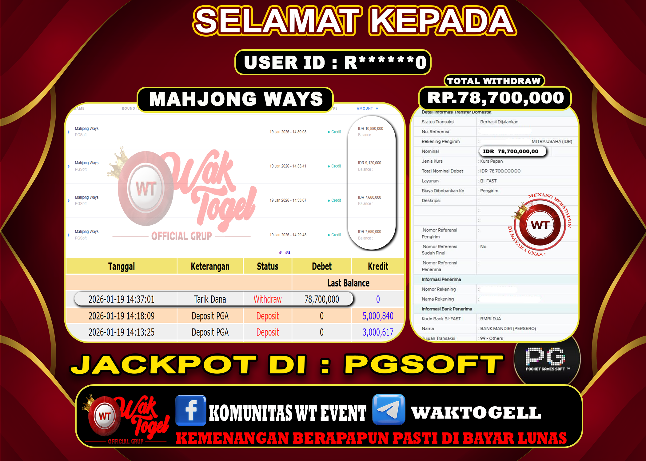 JACKPOT SLOT WAKTOGEL BUKTI PEMBAYARAN SLOT WAKTOGEL By JPWT Januari 19, 2026 0 comments 2 min read BUKTI PEMBAYARAN SLOT WAKTOGEL BUKTI PEMBAYARAN SLOT WAKTOGEL RP. 78,700,000 – GAME : SLOT MAHJONG WAYS (USER ID : R******0 TANGGAL |19-01-2026| CASH LUNAS ! […]