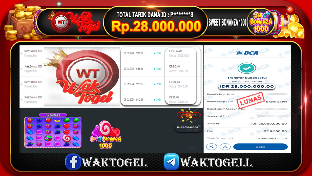 JACKPOT SLOT WAKTOGEL BUKTI PEMBAYARAN SLOT WAKTOGEL By JPWT Oktober 10, 2024 0 comments 2 min read BUKTI PEMBAYARAN SLOT WAKTOGEL BUKTI PEMBAYARAN SLOT WAKTOGEL RP. 28.000.000 – GAME : SLOT SWEET BONANZA 1000 (USER ID :P**********S) TANGGAL |09-10-2024| CASH LUNAS ! […]