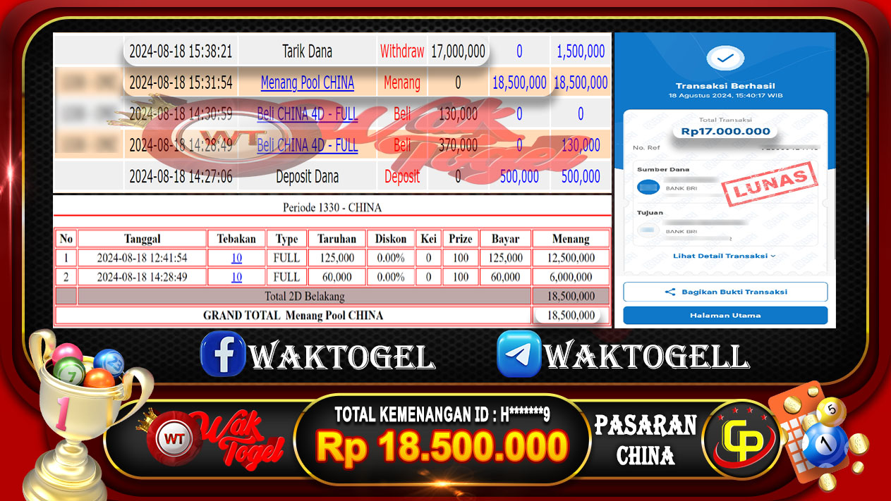 BUKTI PEMBAYARAN CHINA WAKTOGEL BUKTI PEMBAYARAN CHINA WAKTOGEL RP. 18.500.000 – GAME : TOGEL CHINA POOLS  (USER ID : H*******9) TANGGAL |18-08-2024| CASH LUNAS ! […]