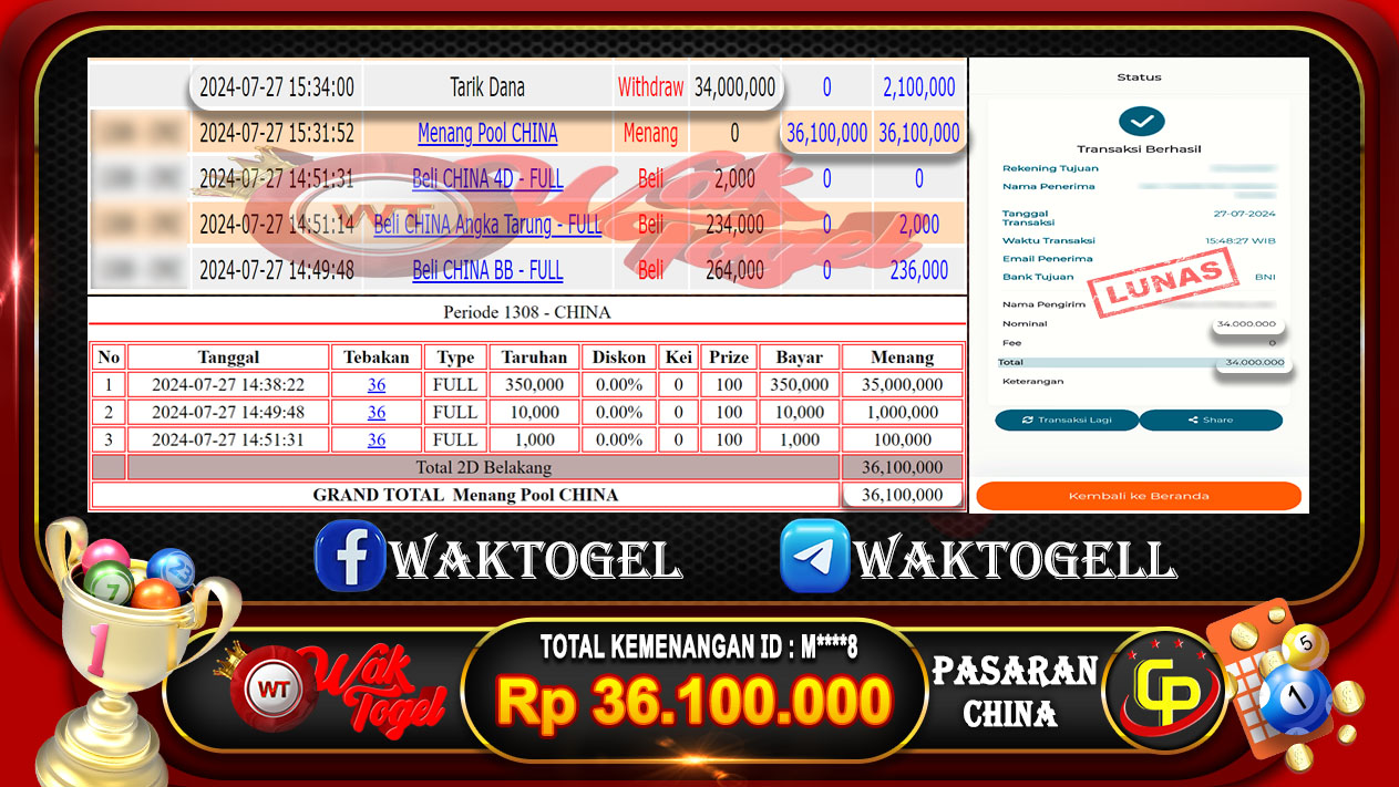BUKTI PEMBAYARAN CHINA WAKTOGEL BUKTI PEMBAYARAN CHINA WAKTOGEL RP. 36.100.000 – GAME : TOGEL CHINA POOLSÂ (USER ID : M****8) TANGGAL |27-07-2024| CASH LUNAS ! […]