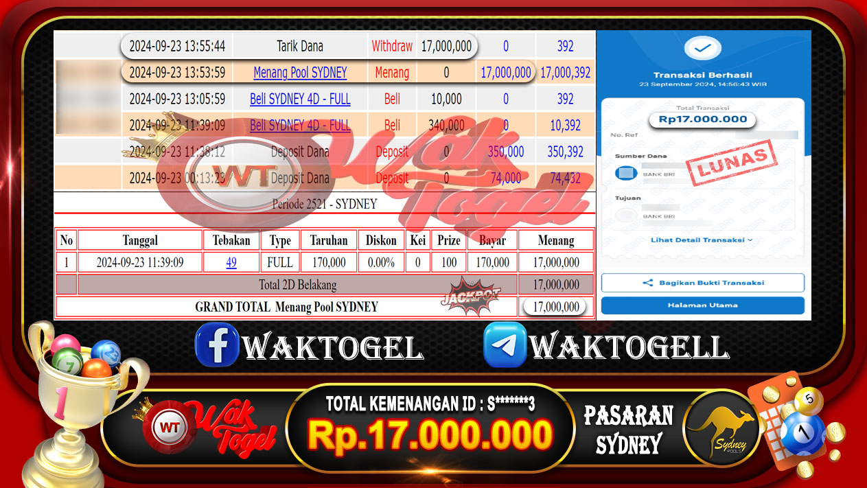 BUKTI PEMBAYARAN SYDNEY WAKTOGEL BUKTI PEMBAYARAN SYDNEY WAKTOGEL RP. 60.000.000 – GAME : TOGEL SYDNEY POOLS (USER ID : K********1) TANGGAL |14-09-2024| CASH LUNAS ! […]